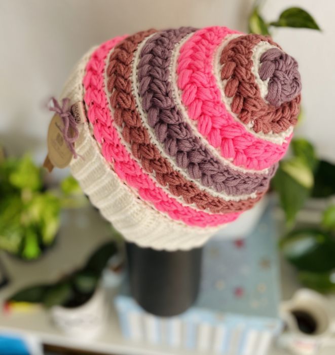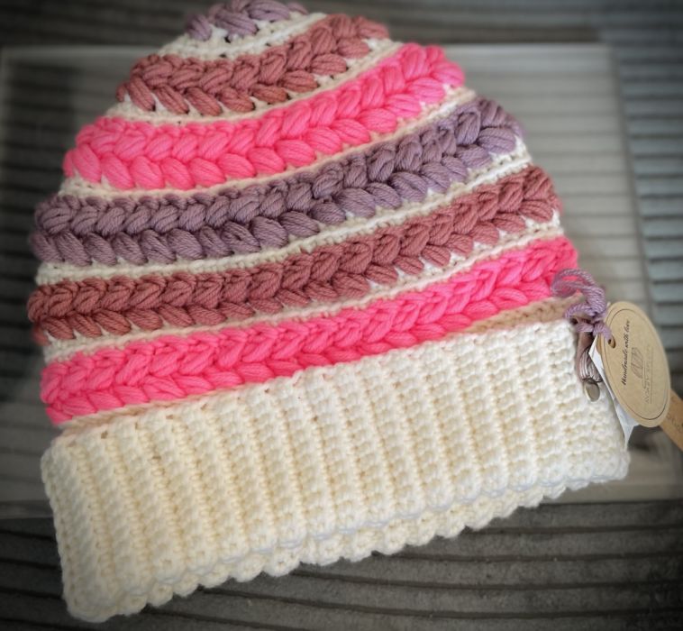 Wyjątkowa czapka wykonana na szydełku z luksusowej włoskiej włóczki z wełny merynosa.