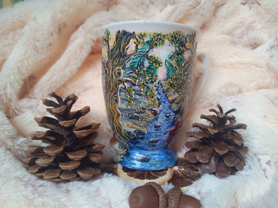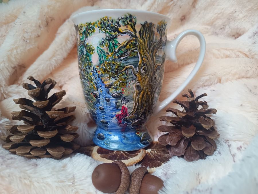 Kubek malowany wiele godzin z wielką troską o wszelkie szczegóły z miłości do natury, z miłości do tego co piękne i ulotne..