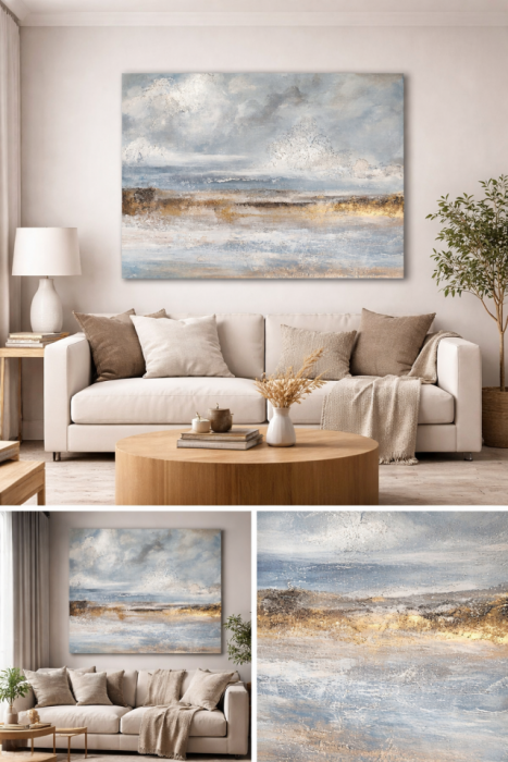 Obraz ręcznie malowany na płótnie, przeznaczony wyłącznie do użytku dekoracyjnego wewnątrz pomieszczeń.