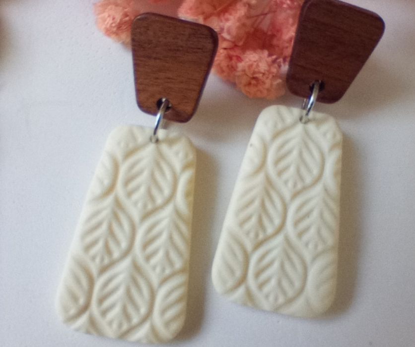 "Dafne" v.3 - kolczyki wykonane ręcznie z gliny polimerowej w pięknym śmietankowym kolorze.
