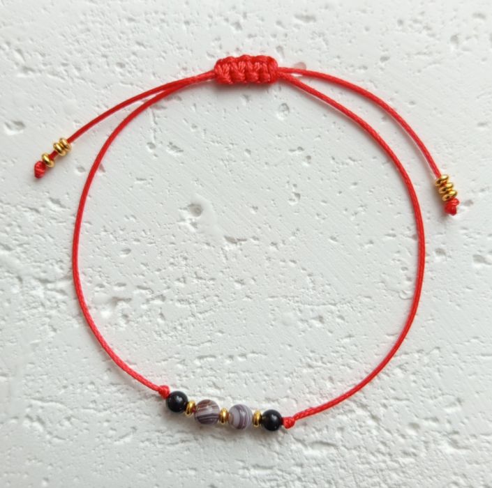 "Kaja" - subtelna bransoletka z kamieni naturalnych i ozdobnego sznurka, wykonana z dużą starannością i dbałością o szczegóły.