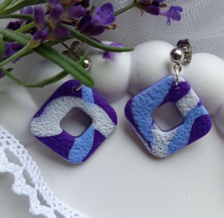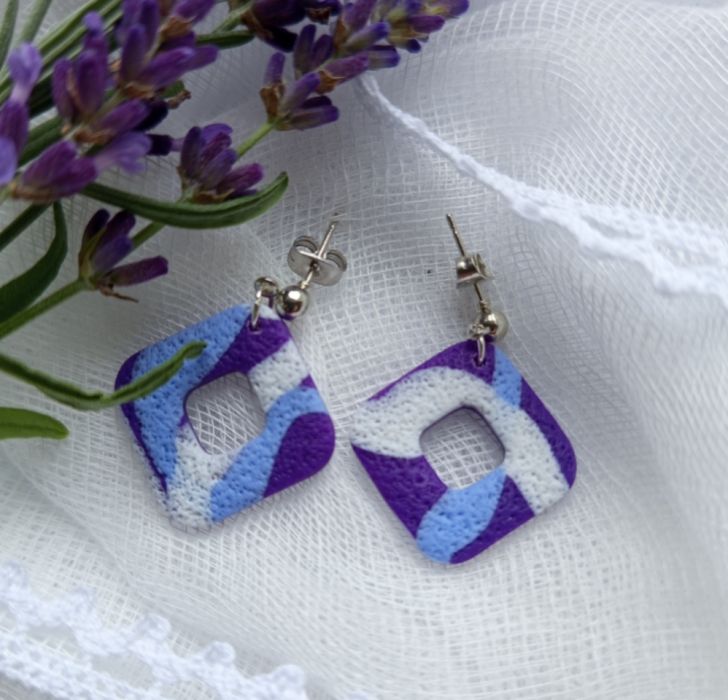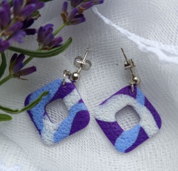 "Lotis II" - ręcznie robione kolczyki z gliny polimerowej w odcieniach fioletu.
