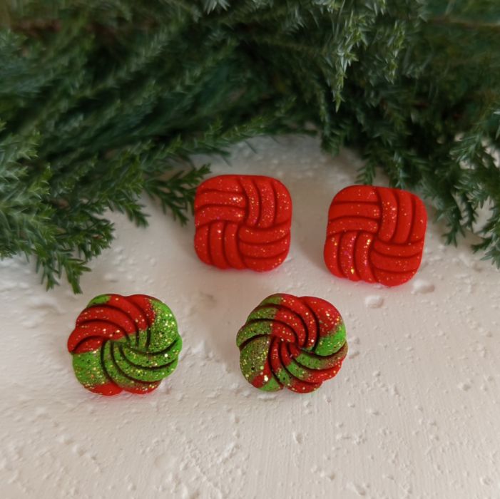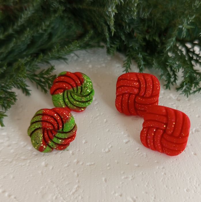"Noel" v.1 - zestaw dwóch par kolczyków sztyftów, wykonanych ręcznie z gliny polimerowej.