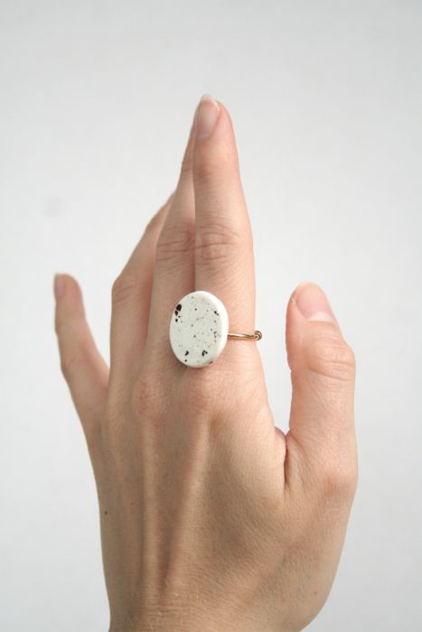 Wzór oparty jest na autorskim projekcie. Pierścionek wykonany jest z gliny polimerowej i stali nierdzewnej dzięki czemu jest bardzo trwały na wszelkiego rodzaju uszkodzenia.