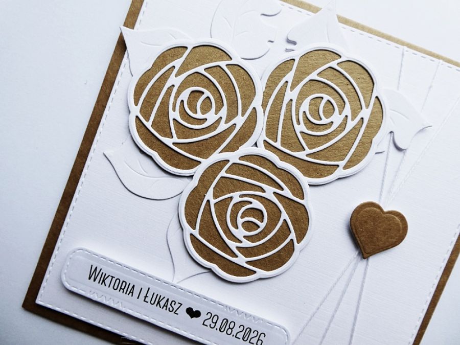 Zadaj pytanie dotyczące produktu: Skromna kartka ślubna z różami z życzeniami