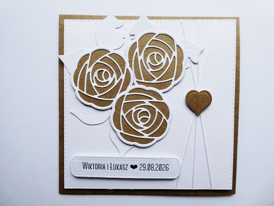 Nazwa produktu: Skromna kartka ślubna z różami z życzeniami
