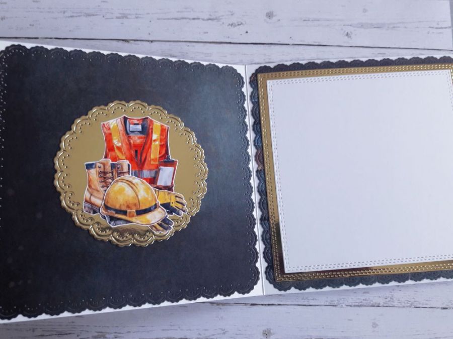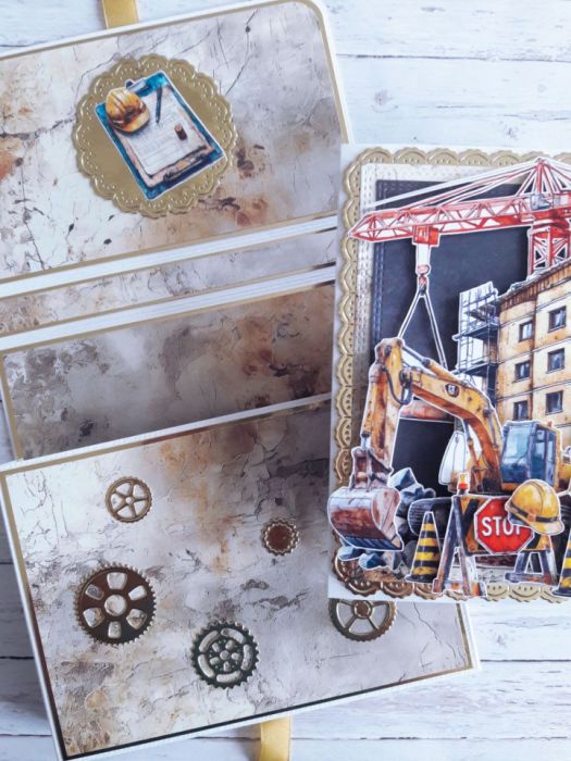 Motywem głównym kartki jest plac budowy na którym trzeba zachować szczególną ostrożność, gdyż znajdują się na nim różne maszyny budowalne, dzięki którym powstaje nowy budynek.