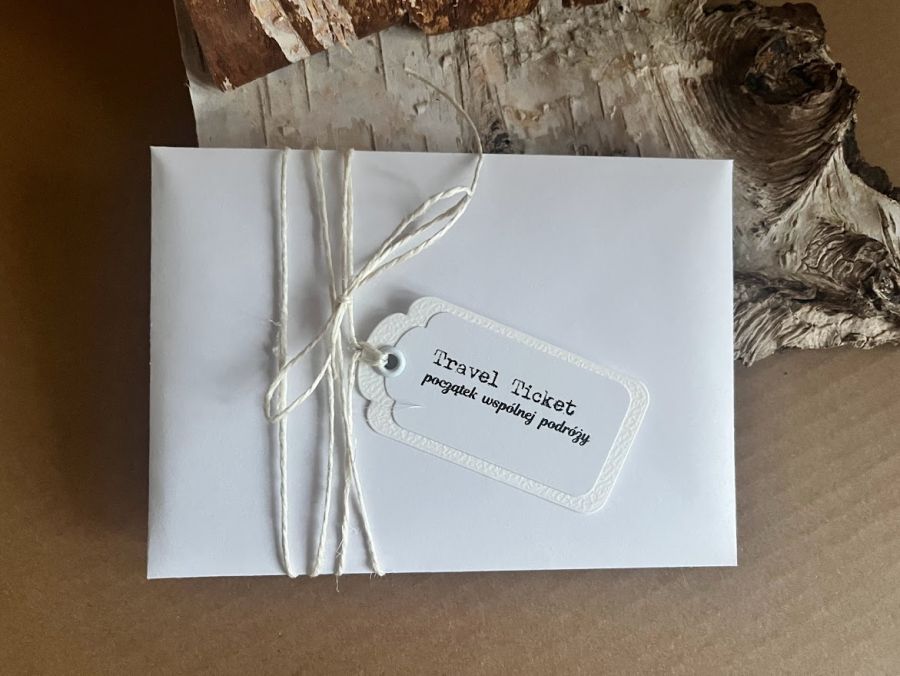 Kartka z okazji Ślubu do koperty dla Młodej Pary , która kocha podróże i wybiera się w szczęśliwą podróż przez wspólne życie z urokliwym samolotem, Komplet stworzony z białego papieru. Kartka ma wymiary 14,5x 10,5 , koperta ma wymiary 15,5 x 11. Całość obwiązana sznurkiem z tagiem – biletem .W środku kartki znajduje sie gotowe życzenia do własnoręcznego podpisu oraz umieszczono kieszonkę na małe co nieco lub kupon lotto W tej postaci produkt dostępny od ręki .