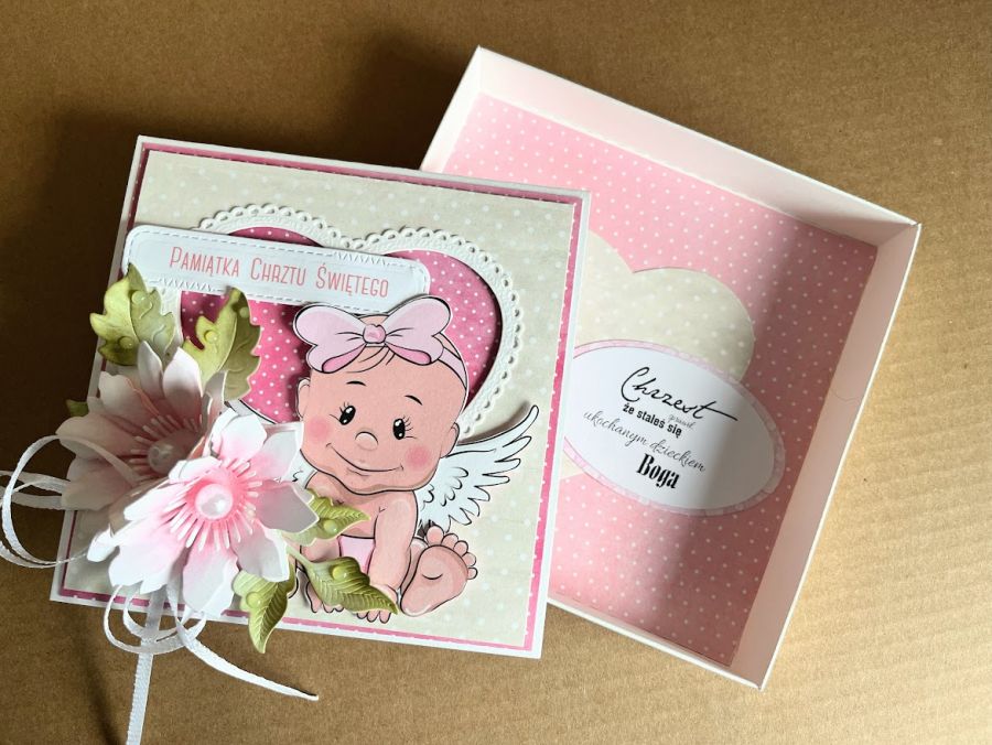 Nazwa produktu: 041,Kartka w pudełku na chrzest w pudełku z torebką