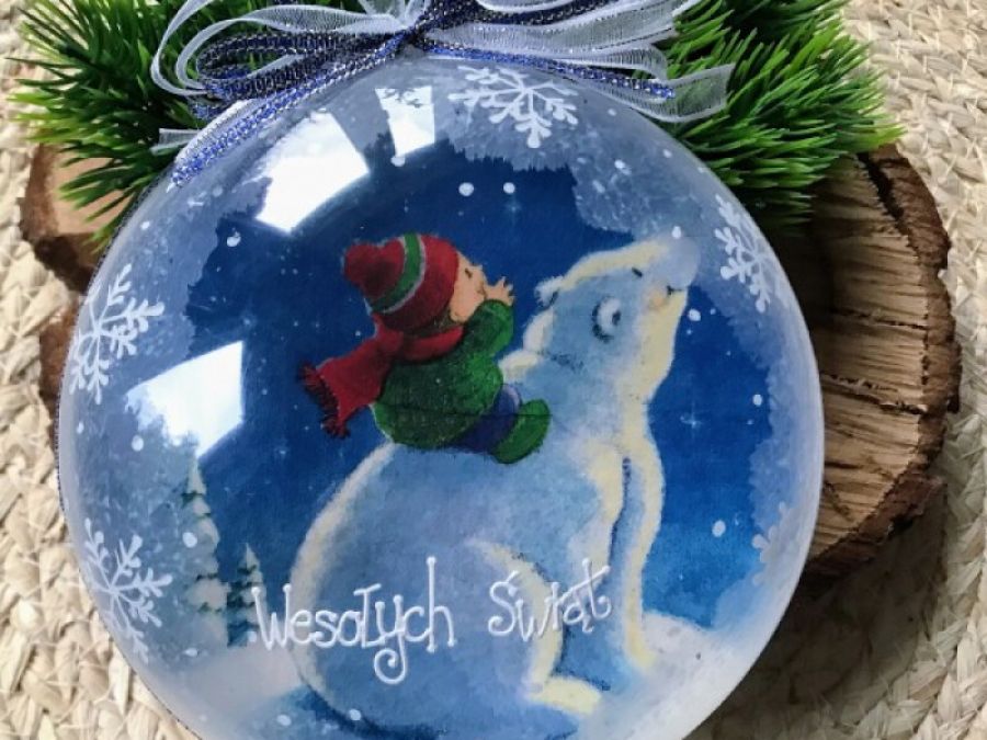 Nazwa produktu: 065,Bombka decoupage z misiem i kolędą