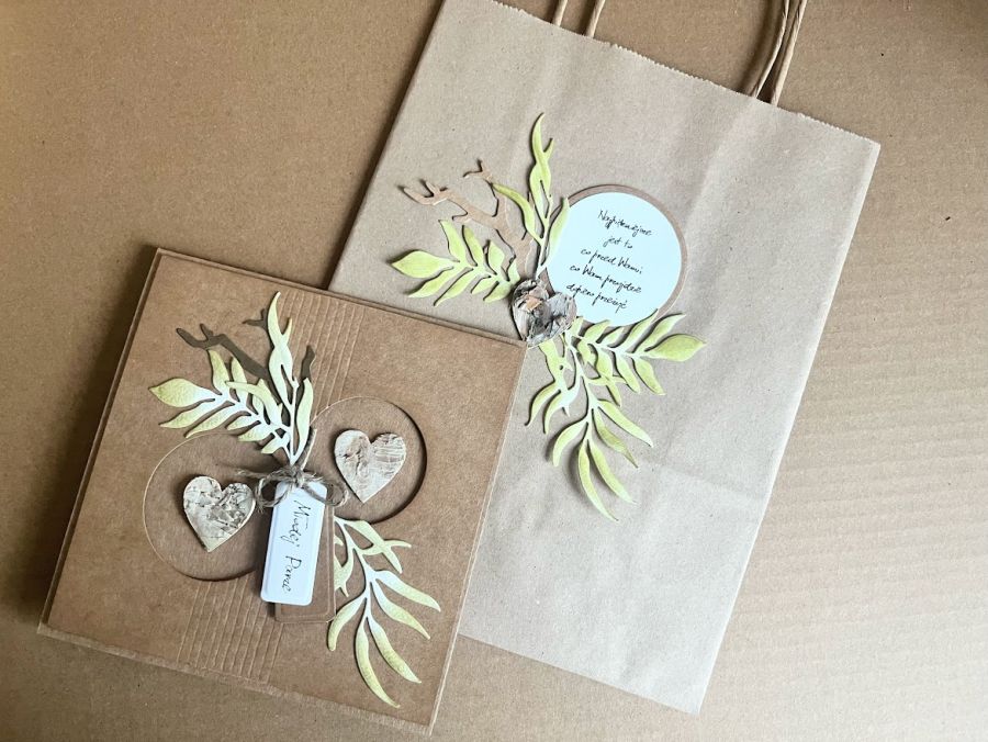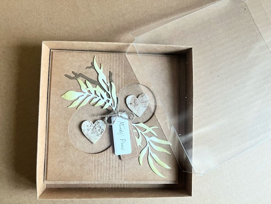 Nazwa produktu: 071,kartka na ślub z brzozowymi serduszkami w pudełku z torebką