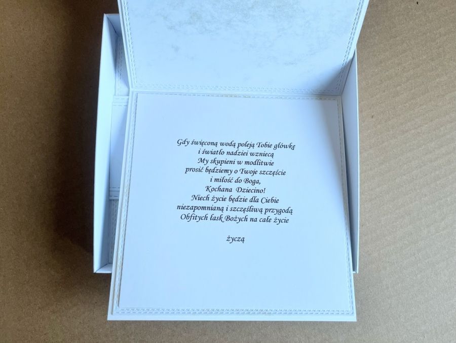 Zadaj pytanie dotyczące produktu: 072,kartka na chrzest św. w pudełku z torebką