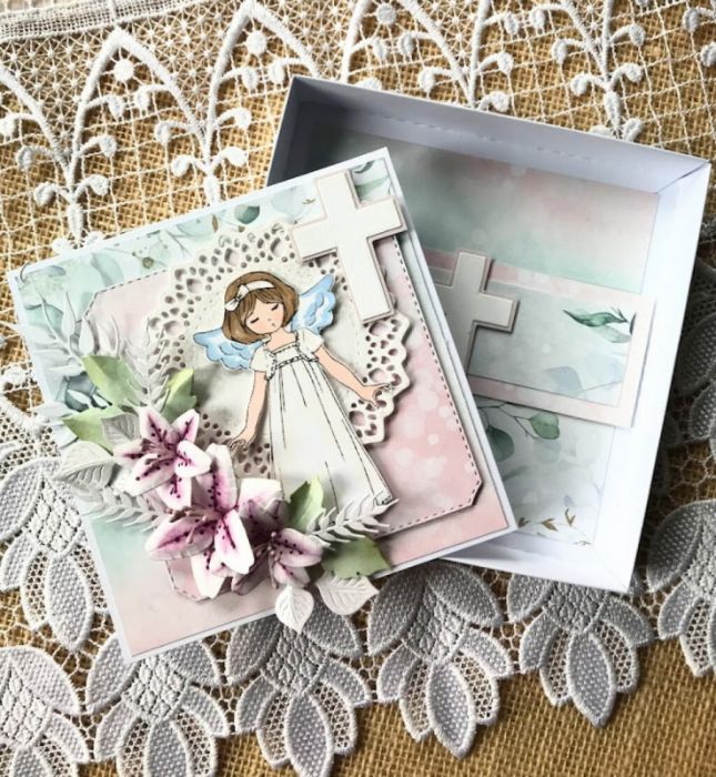 Zadaj pytanie dotyczące produktu: 140,Komunia - kartka w pudełku plus torebka