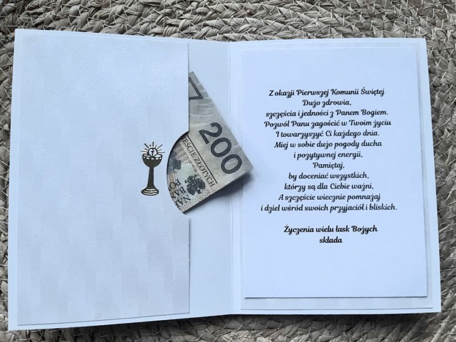 Zadaj pytanie dotyczące produktu: 154,KOMUNIA, Kartka na komunię dla chłopca w pudełku z życzeniami