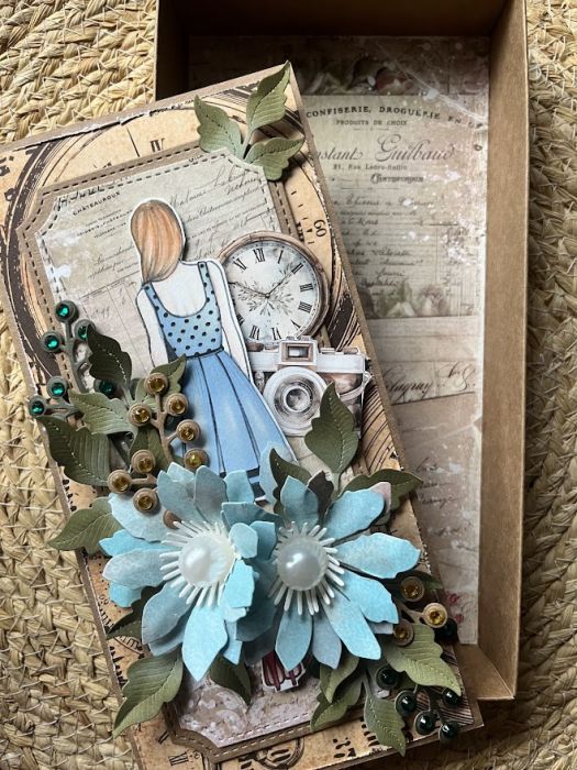 Wyjątkowa i elegancka kartka okolicznościowa , wykonana z najwyższej jakości materiałów do scrapbookingu. Zdobiona elementami 3D. Wykonana z dbałością o każdy detal. Kartka bardzo przestrzenna w komplecie z pudełkiem. Wielkość kartki 10,5 x 21,5. wielkość pudełka 11x 22x3,5cm Wewnątrz kartki miejsce na wpisanie własnych życzeń oraz kieszonka na małe co nieco.Jest możliwość zamieszczenia liczby urodzinowej po wcześniejszej informacji. Polecam