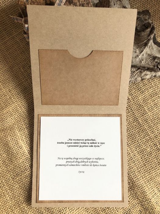 Zadaj pytanie dotyczące produktu: 214,Kartka na ślub w stylu rustykalnym z torebką