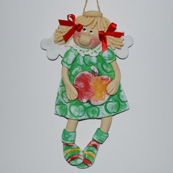 A kto lubi jabłka? - aniołek z masy solnej, prezent, dekoracja