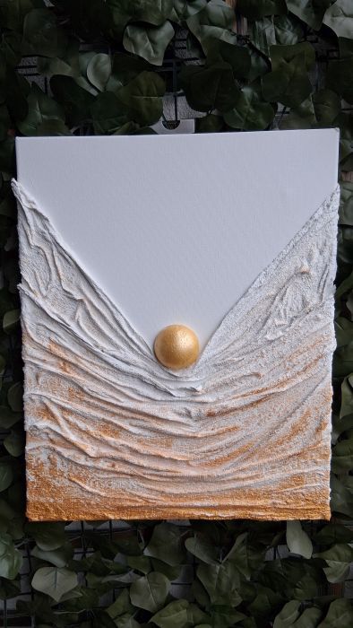 Obraz malowany farbami akrylowymi na płótnie z dodatkiem elementów styropianowych i gipsu
