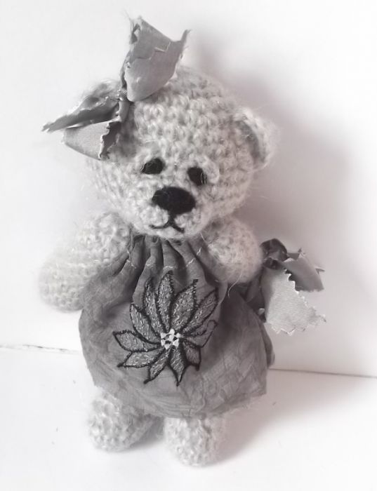 Misiowa dziewczynka wykonana z włóczki na szydełku. Wzrost 15cm.