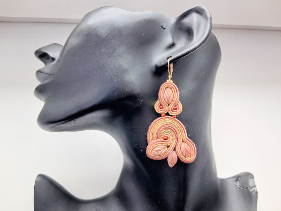 Kolczyki wykonane w modnej technice haftu sutaszowego. Jest ona pracochłonna, ale daje piękne efekty.