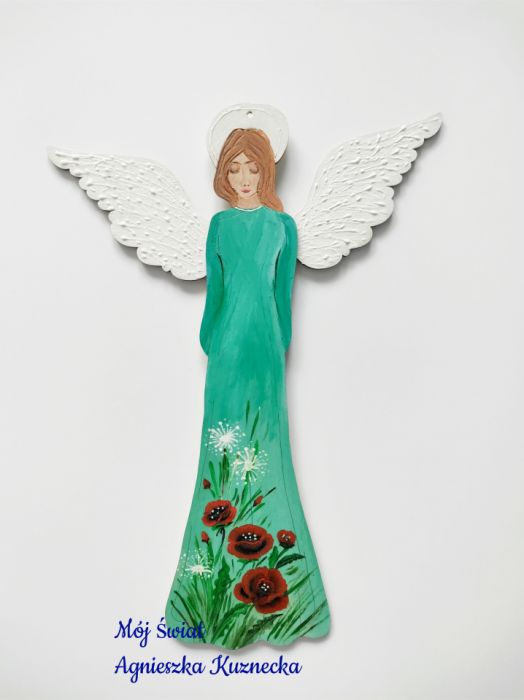 Poznaj anioła, który przynosi ze sobą zapach letniej łąki pełnej czerwonych maków. Ten wyjątkowy, drewniany anioł o smukłej sylwetce i skrzydłami uniesionymi do góry został stworzony z myślą o wnętrzach, w których ceni się duszę i unikatowość.