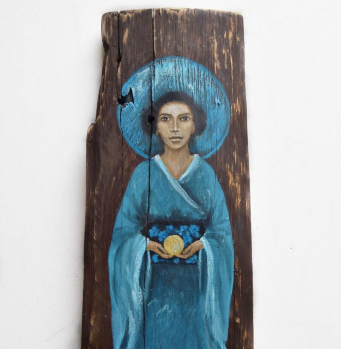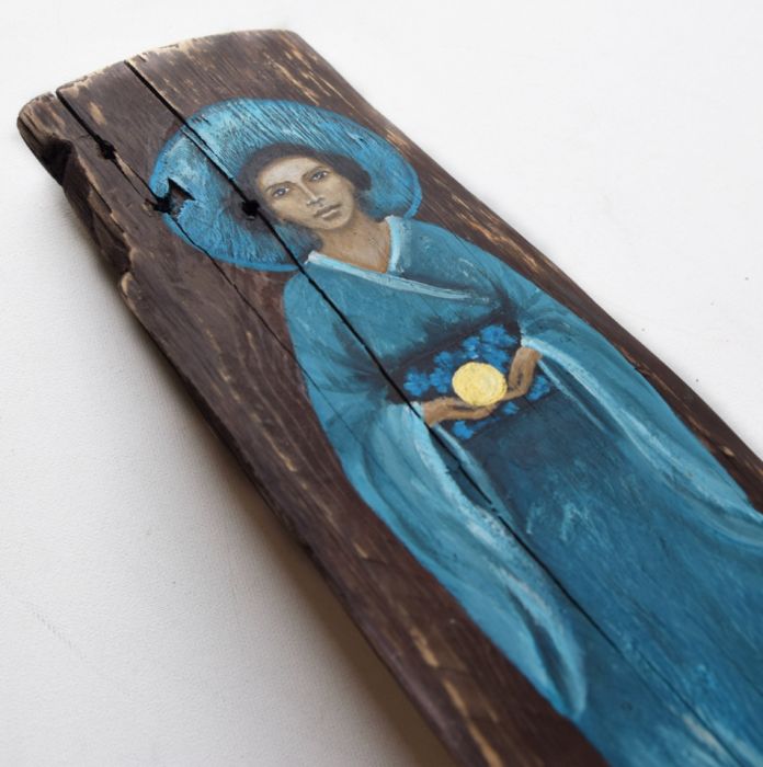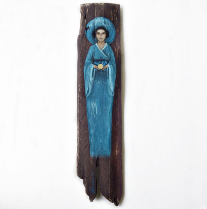 Nazwa produktu: Anioł Akari, obraz malowany na starej desce drewnie handmade rękodzieło