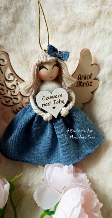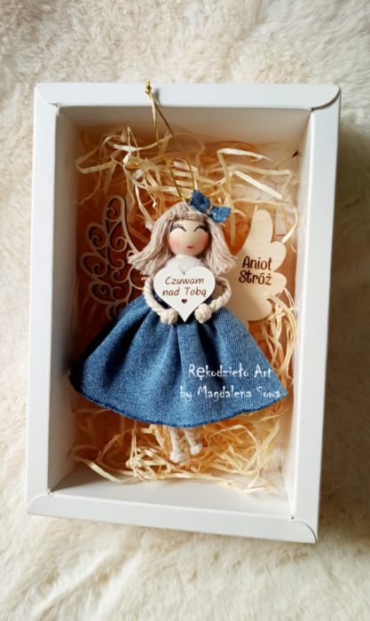 Nazwa produktu: Aniołek w jeansowej spódniczce Anioł Stróż Zawieszka Na prezent