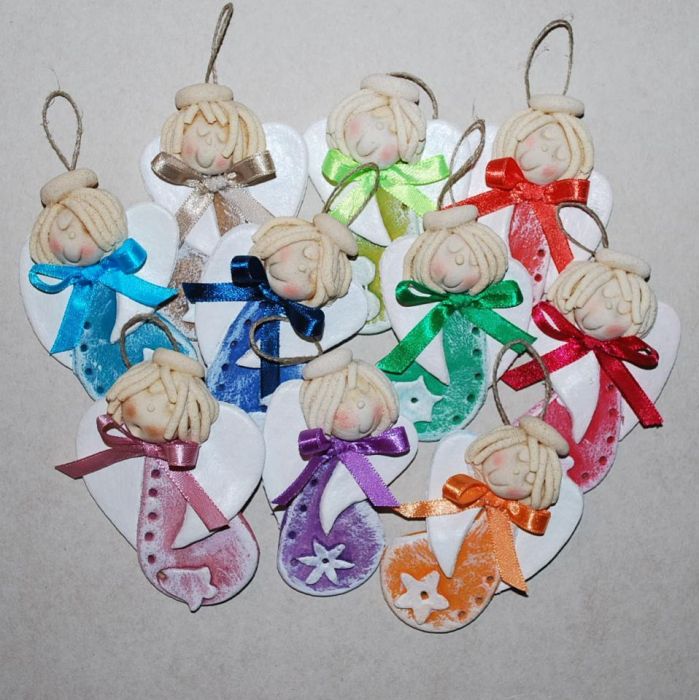 Aniołki na każdą okazję, także nieprzeciętny upominek dla naszych gości. Mogą stać się ozdobą naszego domu i być atrakcyjną świąteczną dekoracją. Wykonane jest z masy solnej, termicznie utwardzane, malowane i lakierowane. Wielkość, bez zawieszki, ok 8 cm. Komplet - 10 szt.