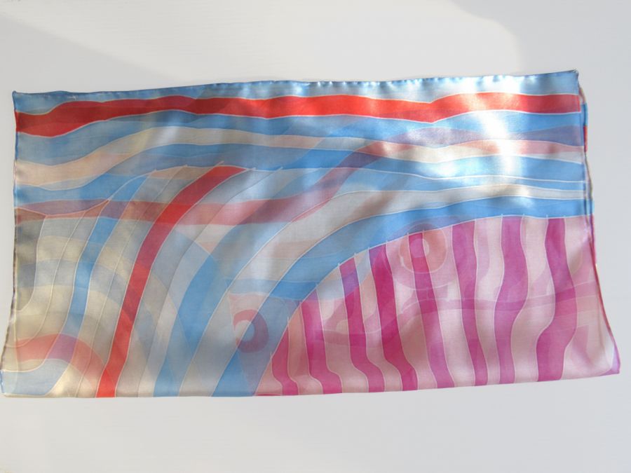 Ręcznie malowana profesjonalnymi farbami do malowania na jedwabiu.