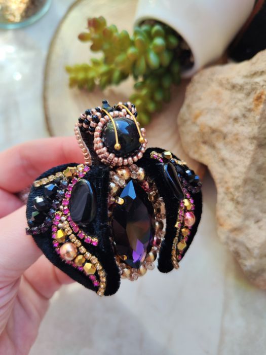 Nazwa produktu: ręcznie robiona broszka z koralików i kryształków