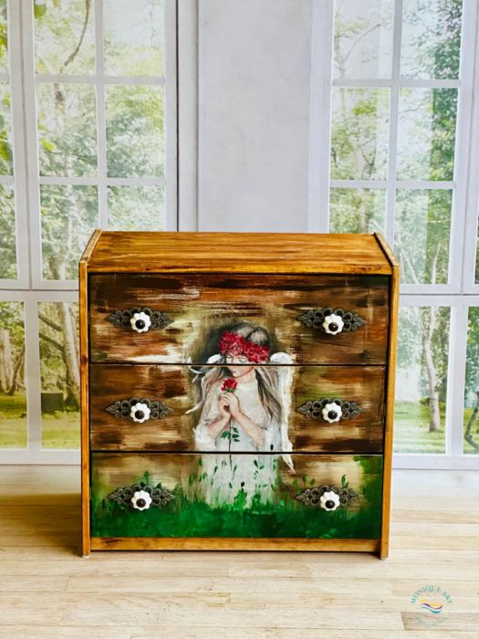 Nazwa produktu: Artystyczna komoda z motywem anioła, rustykalny klimat, do salonu lub sypialni