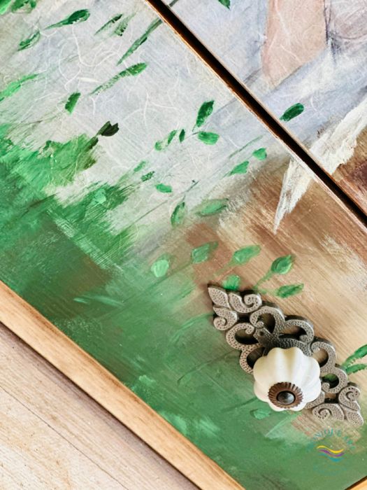 Motyw: subtelny anioł z różą – romantyczny, delikatny obraz na froncie szuflad, idealny do wnętrz w stylu vintage, boho lub rustykalnym.