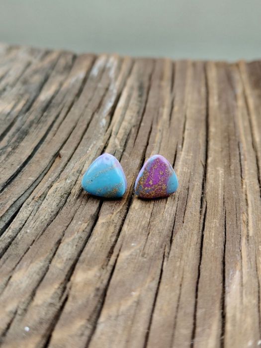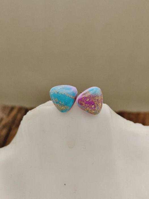 Zachwycające kolczyki handmade inspirowane kolorami zorzy polarnej. Każda para jest unikatowa – subtelne przejścia turkusu, błękitu i fioletu zostały wzbogacone delikatnymi drobinkami złota, a całość zabezpieczona błyszczącą warstwą żywicy, która nadaje im elegancki, szklisty efekt. Lekkie i wygodne, idealne zarówno na co dzień, jak i jako wyjątkowy akcent do stylizacji wieczorowych.