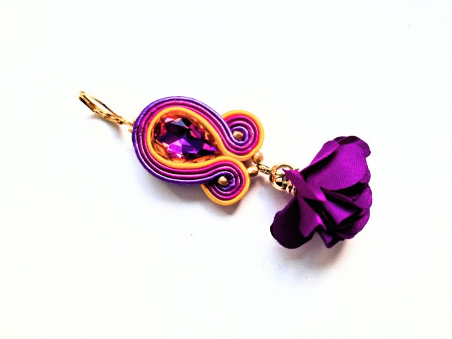 Kolczyki wykonane w modnej technice haftu sutaszowego. Jest ona pracochłonna, ale daje piękne efekty.