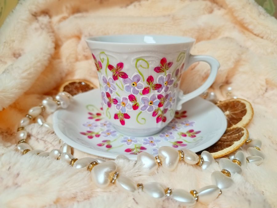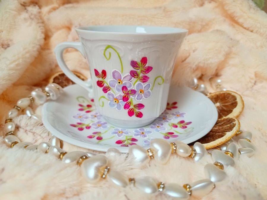 Zadaj pytanie dotyczące produktu: Barwny ręcznie malowany komplet kwiaty 250ml. talerzyk i filiżanka