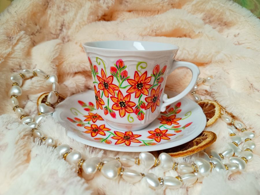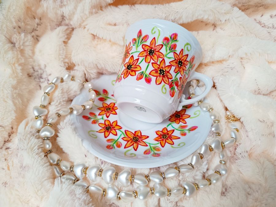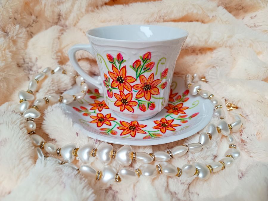 Zadaj pytanie dotyczące produktu: Barwny ręcznie malowany komplet kwiaty 250ml. talerzyk z filiżanką