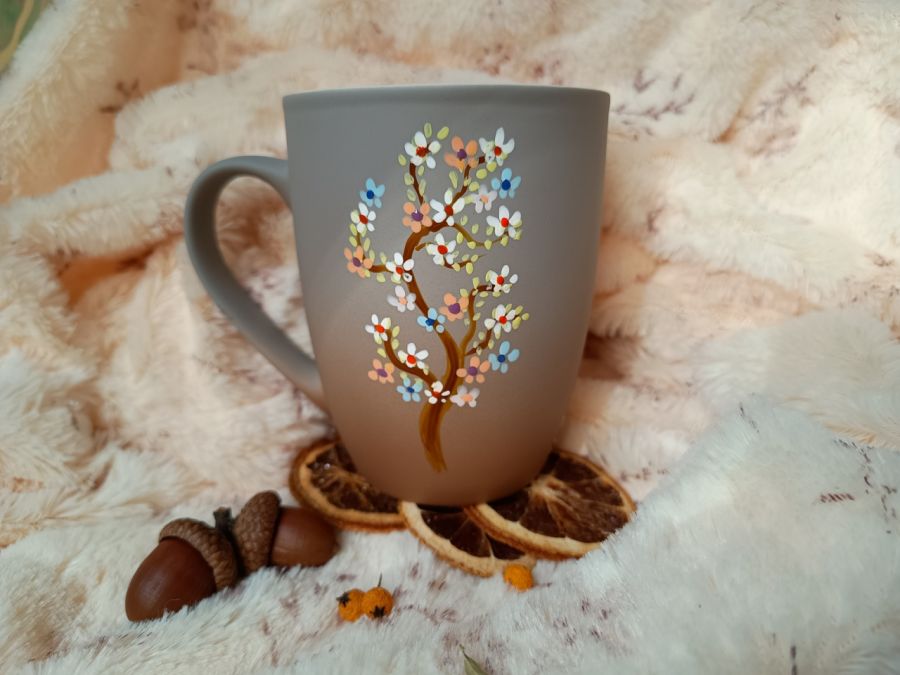 Kubek malowany wiele godzin z wielką troską o wszelkie szczegóły z miłości do natury, z miłości do tego co piękne i ulotne..