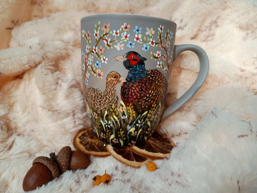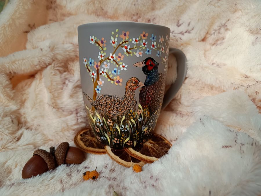 Zadaj pytanie dotyczące produktu: Bażanty ręcznie malowany kubek 300 ml.