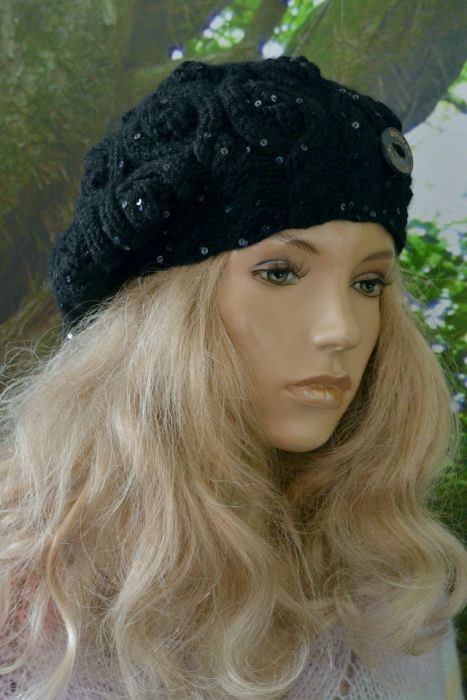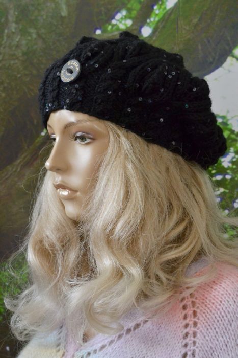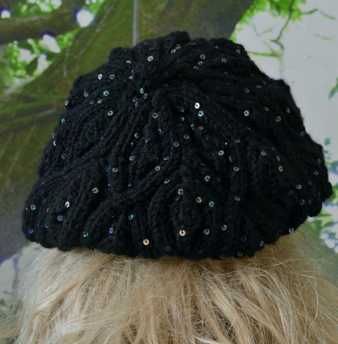 Nazwa produktu: Beret w warkocze w kolorze czarny z cekinami