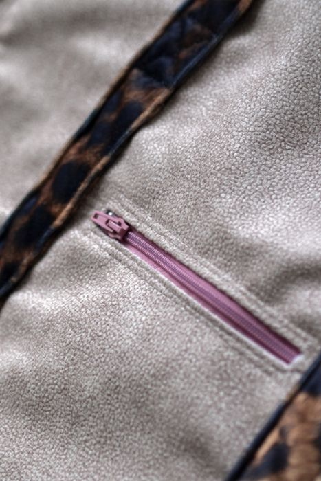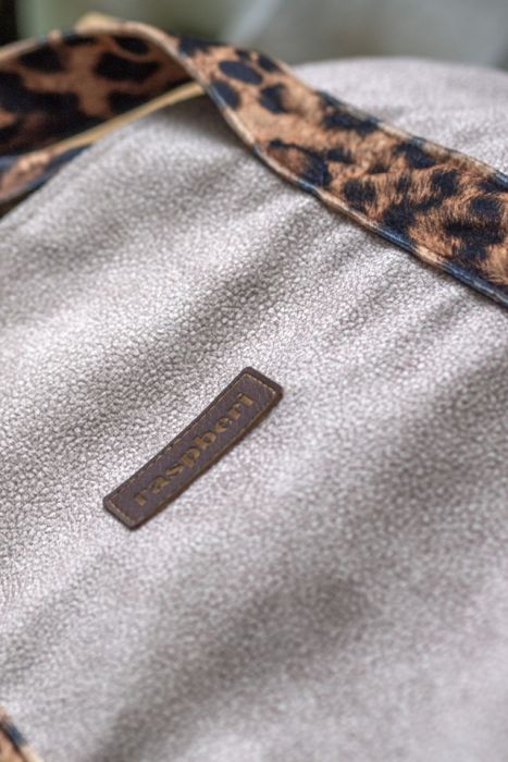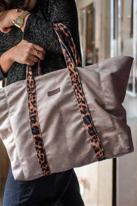 Duża torba typu shopperka w kolorze beżowym wykonana z weluru. Pasy z weluru w panterkę.