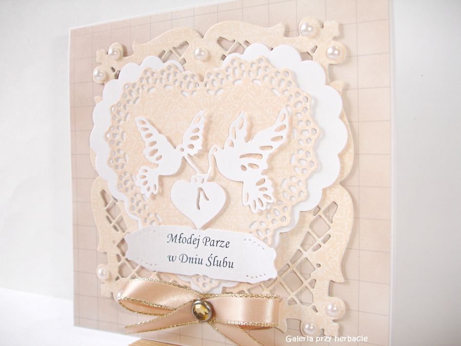 Nazwa produktu: Beżowa kartka ślubna z gołąbkami