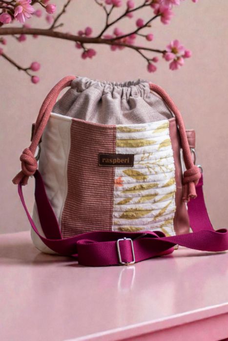 Zadaj pytanie dotyczące produktu: Beżowo-różowa patchworkowa listonoszka z kominem