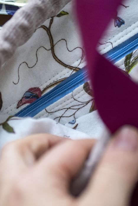 Środek torebki wykończony jest bawełnianą podszewką.
