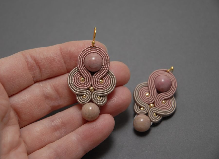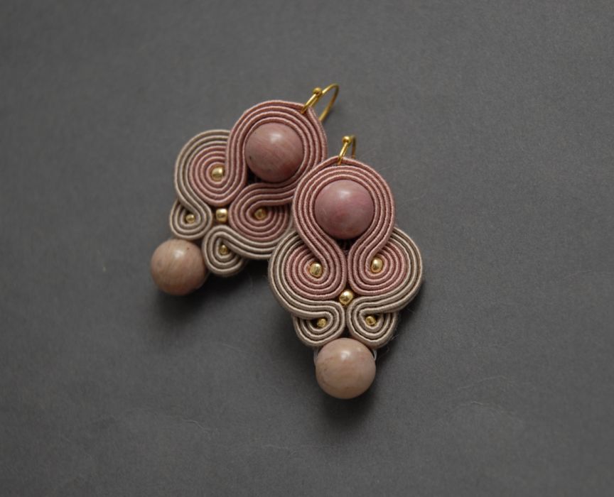 oferuję kolczyki lub klipsy zrobione techniką sutasz, ozdobione rodonitami i koralikami