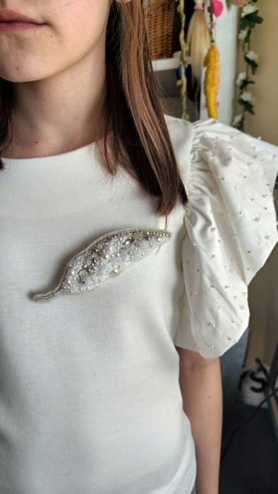 Zadaj pytanie dotyczące produktu: Biała broszka z piórkiem prezent dla Anioła