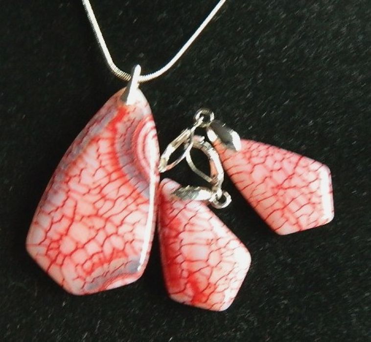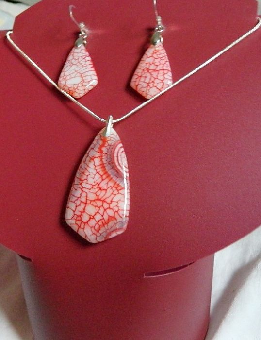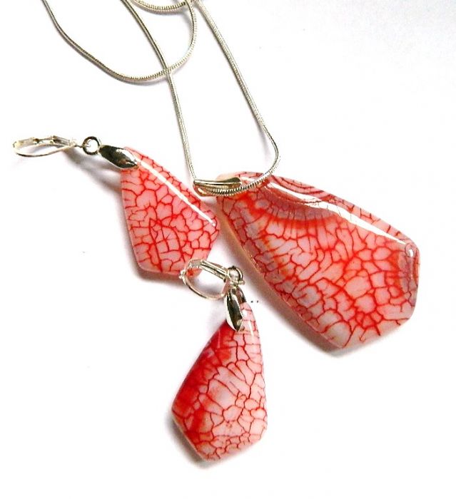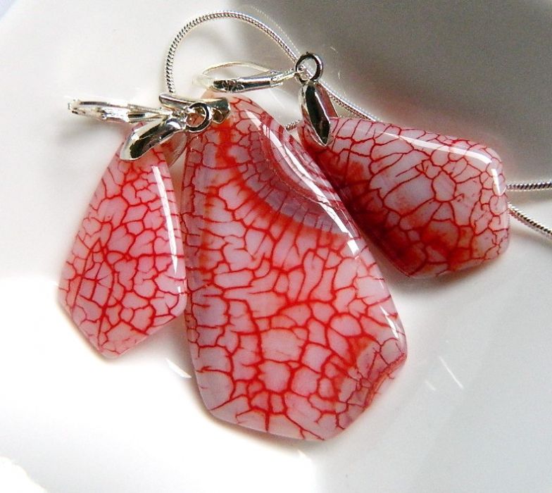 Zadaj pytanie dotyczące produktu: Biało-czerwony agat ognisty i srebro, elegancki zestaw biżuterii