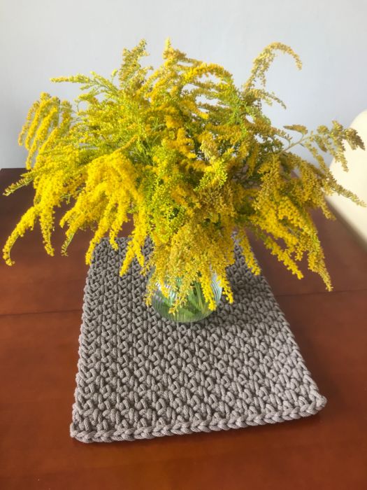 Bieżnik wykonany na szydełku z sznurka bawełnianego 5mm.