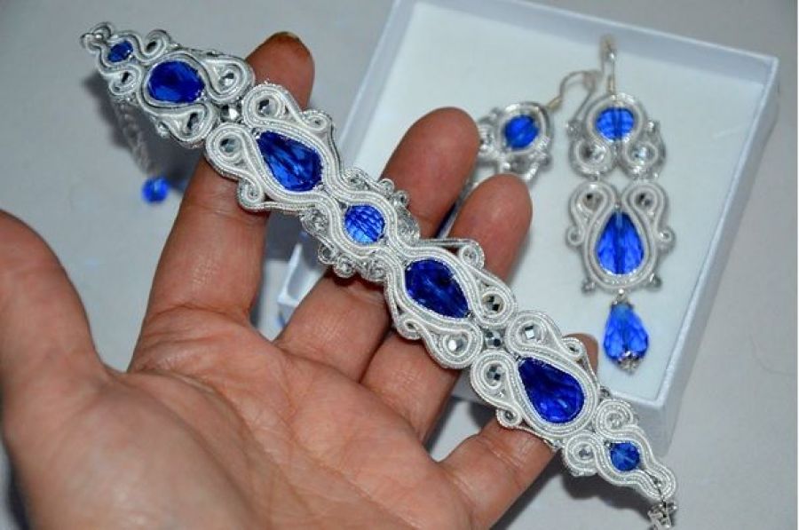 Nazwa produktu: biżuteria ślubna sutasz kobalt,biel,srebro