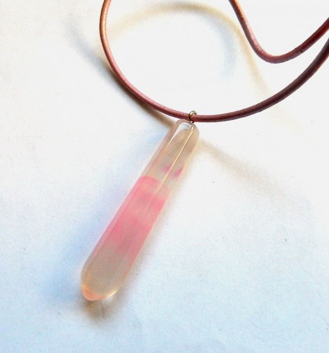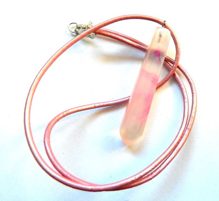 Zadaj pytanie dotyczące produktu: Blado różowy agat , prosty, minimalistyczny wisiorek na rzemyku