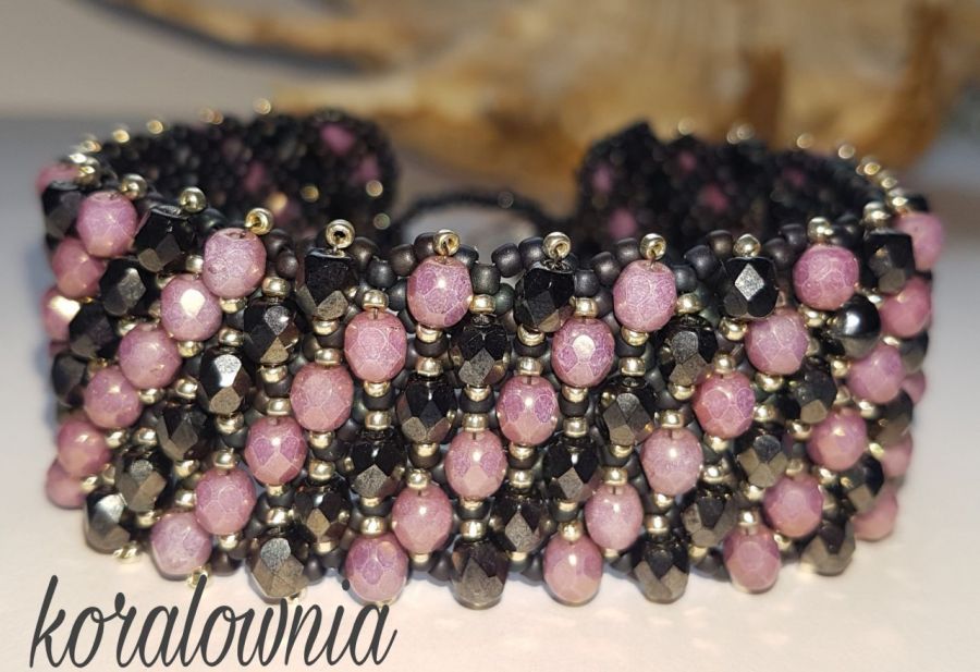 Wykonana z wysokiej jakości szklanych koralików TOHO I Fire Polish typu – „mankiecik”. Wygodna, pasuje do codziennego, swobodnego stroju.
